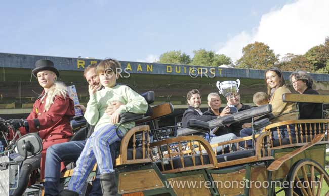 Boven: De hele Familie Ter Borgh in de koets bij de ereronde.