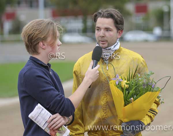 de winnende eigenaar Robin Goudsblom bij de huldiging.