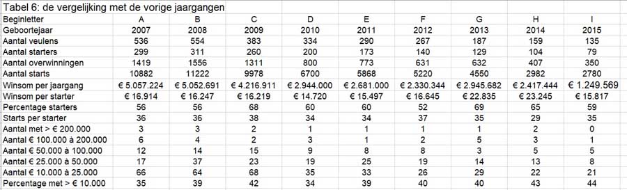 tabel 6: de vergelijking met vorige jaargangen