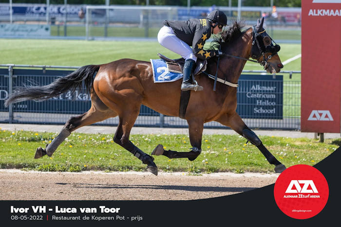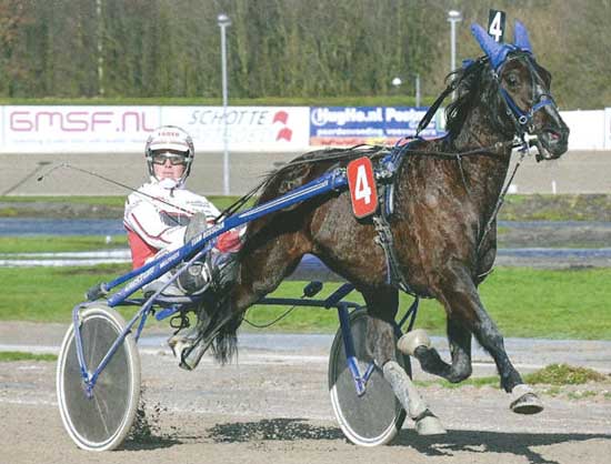 Zijn rijder Ruud Pools is links nog net te zien. Hij wordt gevolgd door