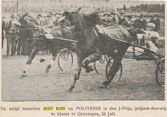 zoons Willem en Heine. Volgens het Ned. Dravers-Stamboek was Ago Kan's moeder Krolika en zijn vader de bekende hengst Henriot,