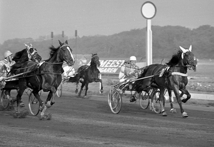 Boven: Hinde Buitenzorg (met Huib v.d. Heuvel) wint, nipt voor Herbie W,