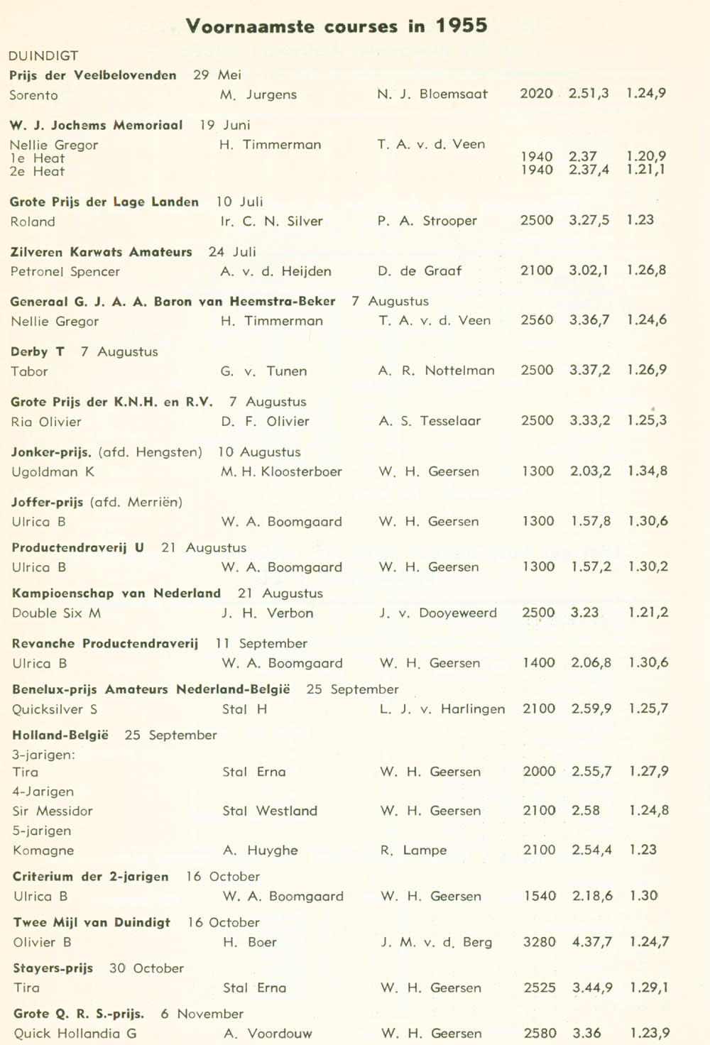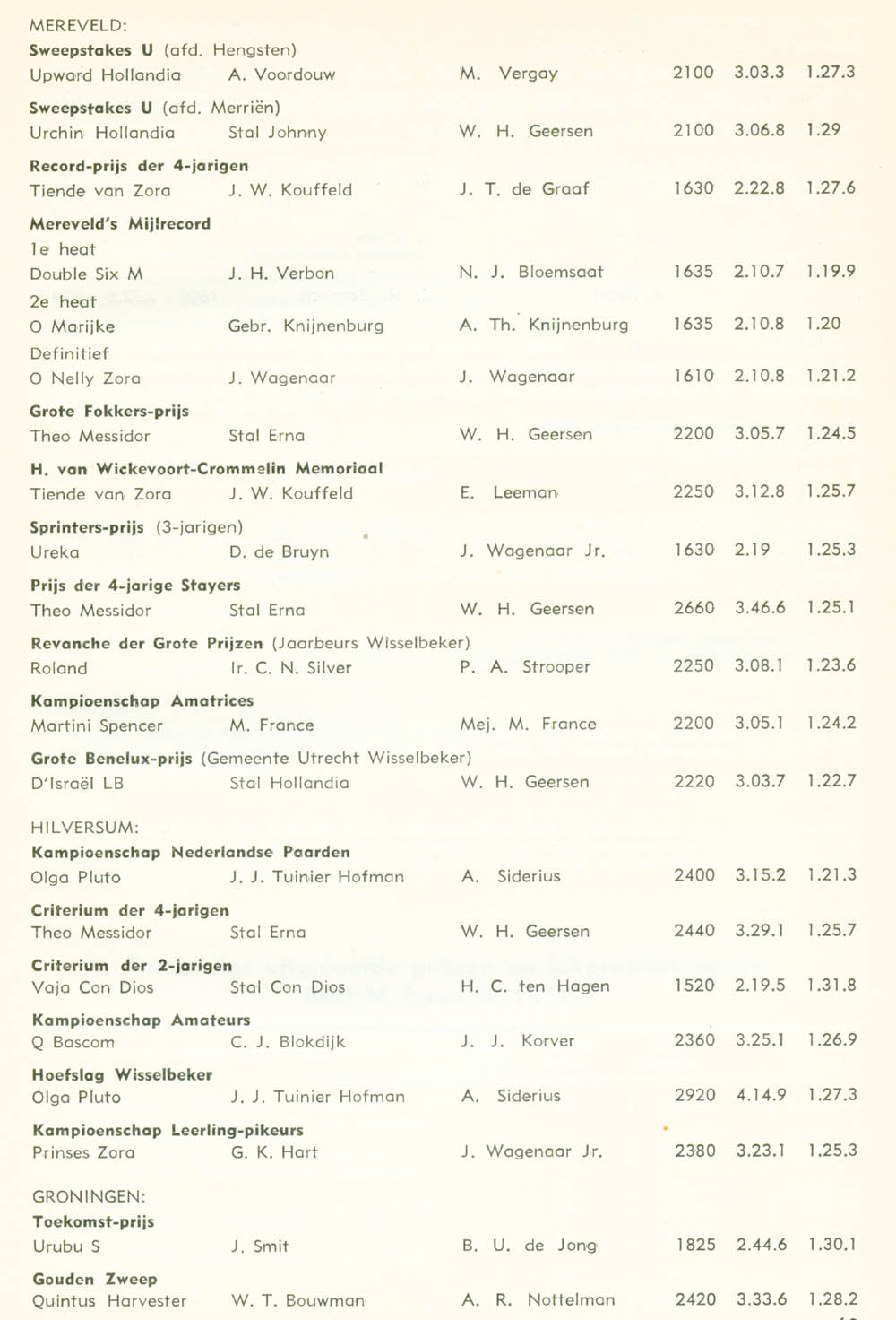 deze geen lange reeksen koersen meer behoeven te lopen. Gevolg hiervan zal zijn, dat de oudere paarden minder startmogelijkheden zullen vinden. Behoudens de beste onder de oudere paarden om in de internationale nummers het vergelijk met de zich aandienende jeugd te kunnen treffen.